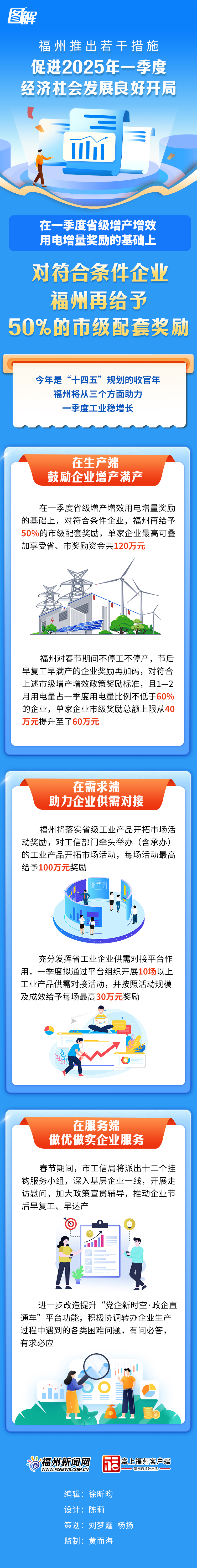 在一季度省级增产增效用电增量奖励的基础上 对符合条件企业福州再给予50%的市级配套奖励