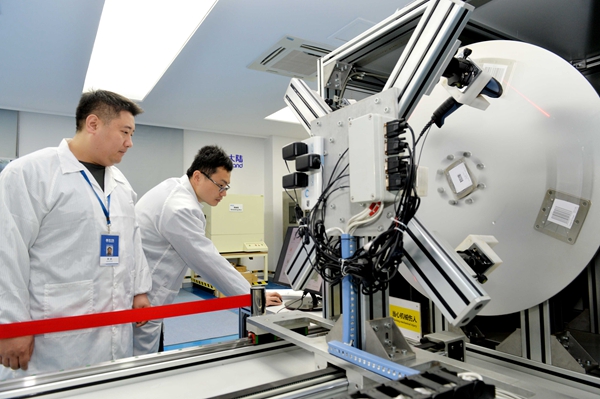 新大陆工程试验中心进行机器人条码识读检测。作者:廖云岚
