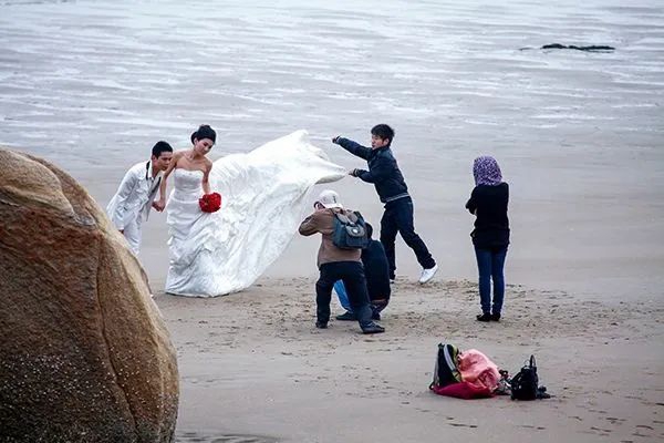 当时年轻人很喜欢在下沙拍婚纱照,摄于2012年。杨婀娜/摄