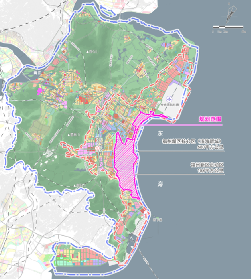 (1)范围:北至福州长乐国际机场南部的显应宫、海瀛湾酒店区域,东至海滨,南接松下镇,西至漳江河-东湖-南阳山一线,总面积约35平方公里。