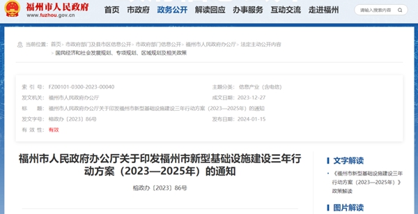 福州市人民政府办公厅关于印发福州市新型基础设施建设三年行动方案(2023—2025年)的通知