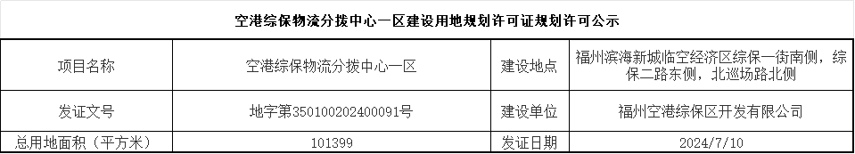 空港综保物流分拨中心一区建设用地规划许可证规划许可公示