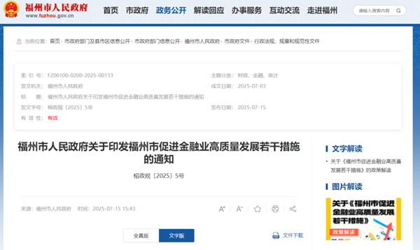 福州市人民政府关于印发福州市促进金融业高质量发展若干措施的通知