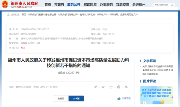 福州市促进资本市场高质量发展