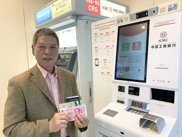 这是66岁的加拿大华侨陈先生第3次回国探亲,航班刚在长乐机场落地,陈先生就被这台外币兑换机暖心到了。按照外币兑换机业务流程,陈先生很快把手上的加币兑换成了人民币。