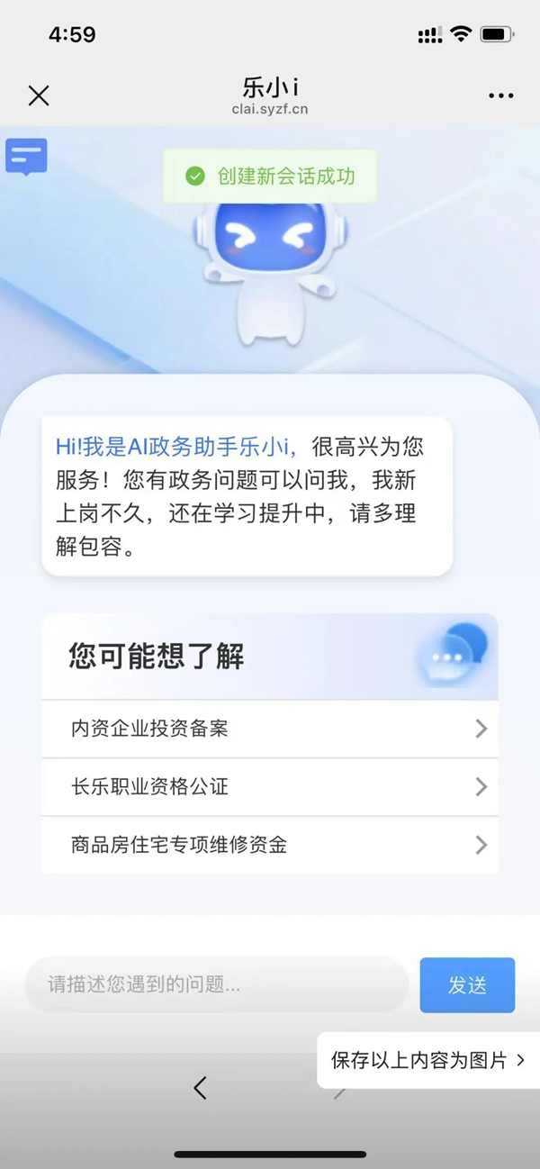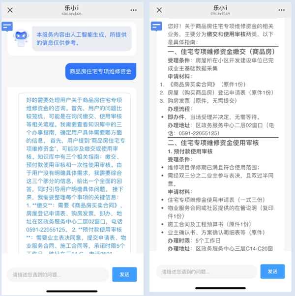 点击“AI政务助手”即可进入界面,向“乐小i”提出相关问题。