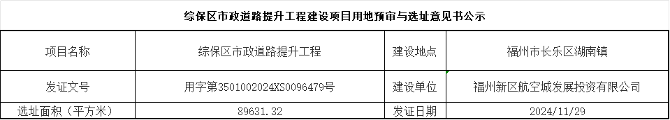 综保区市政道路提升工程建设项目用地预审与选址意见书公示