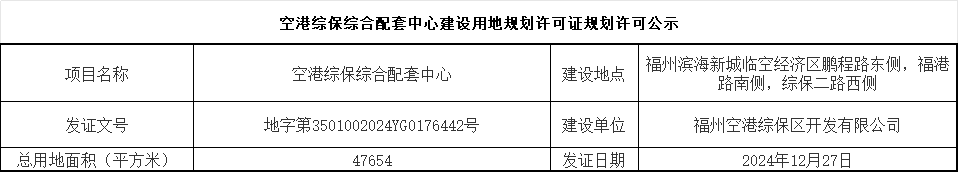 空港综保综合配套中心建设用地规划许可证规划许可公示