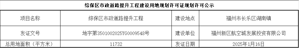 综保区市政道路提升工程建设用地规划许可证规划许可公示