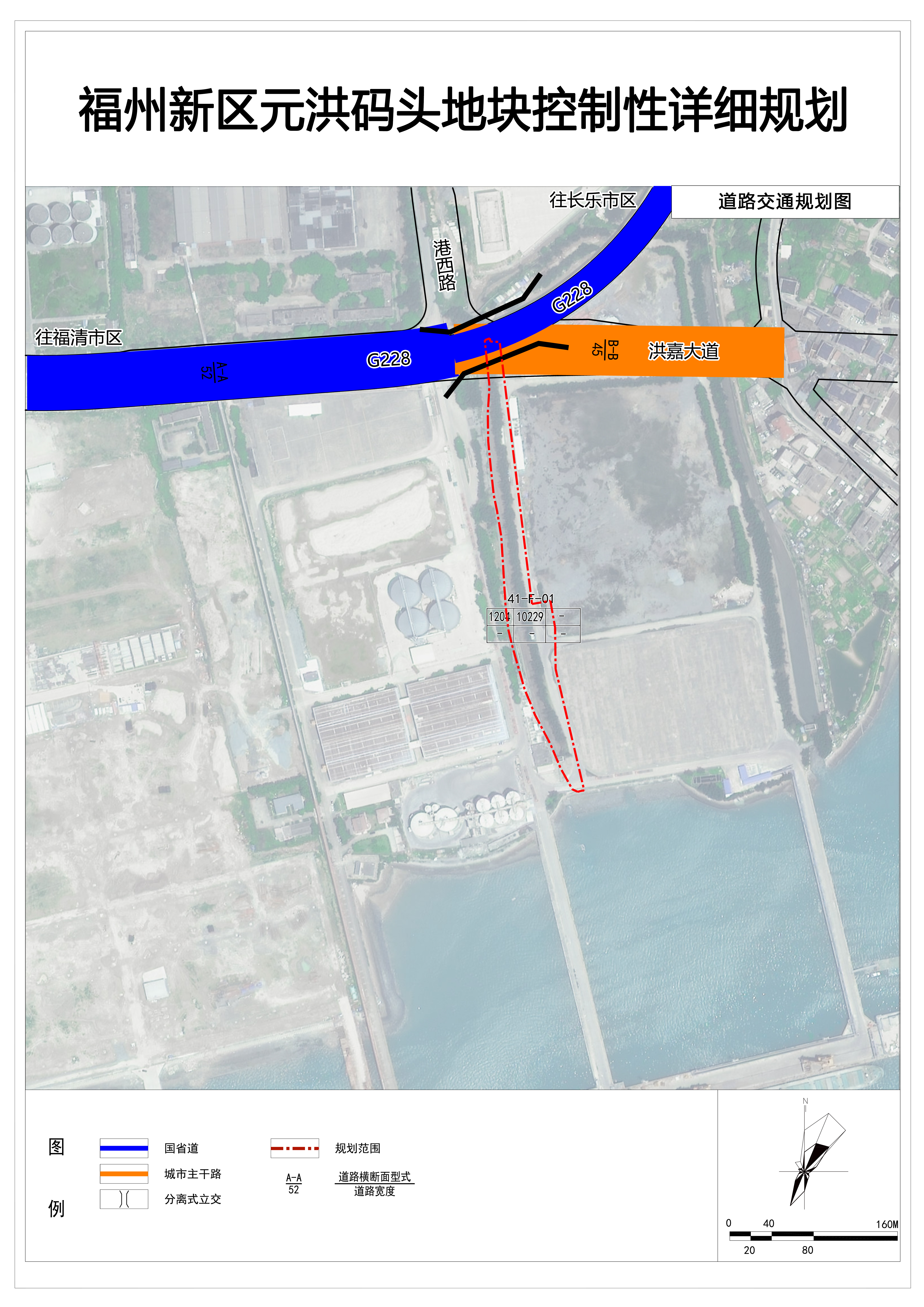 规划G228穿越本规划区北部,上跨洪嘉大道与港西路交叉口,连接现状G228。G228规划宽度为26.5米(主线)~52米(含辅路),双向六车道(主线)~双向十车道(含辅路)。