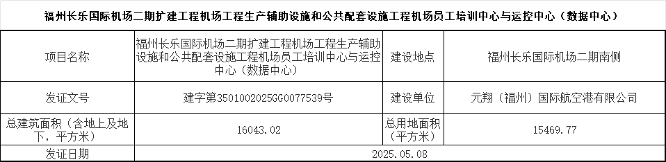 福州长乐国际机场二期扩建工程机场工程生产辅助设施和公共配套设施工程机场员工培训中心与运控中心(数据中心)批后公示