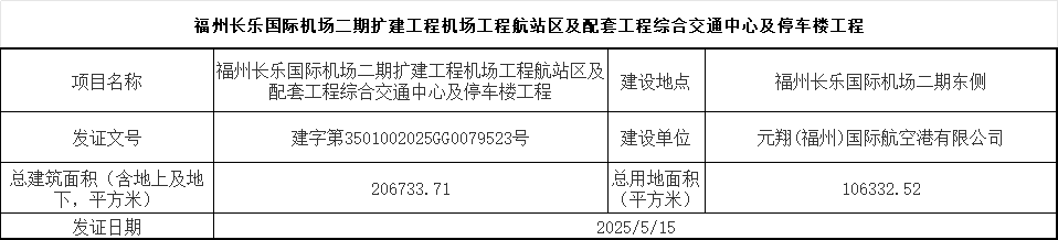 福州长乐国际机场二期扩建工程机场工程航站区及配套工程综合交通中心及停车楼工程批后公示