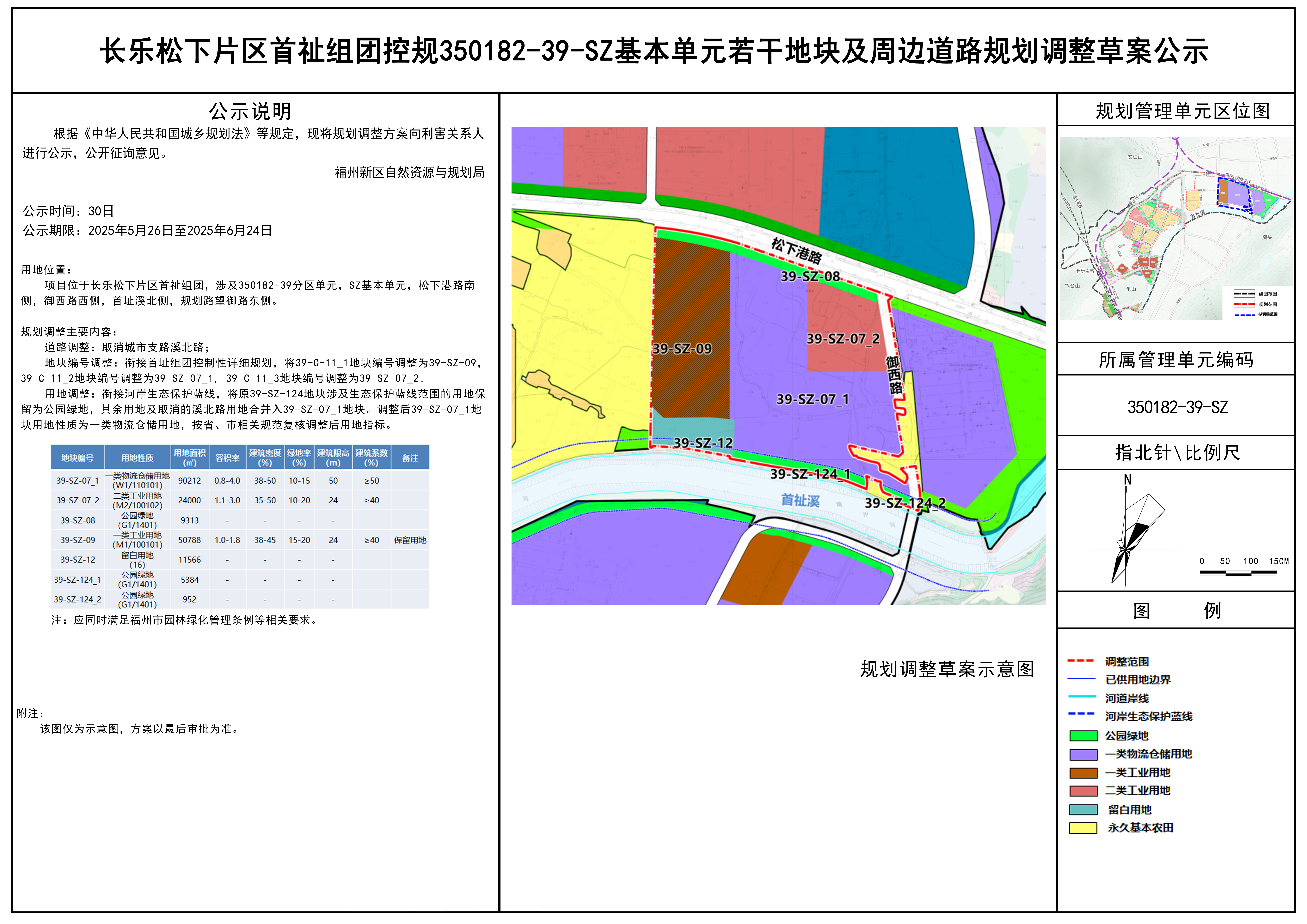 根据bl漫画 党工委管委会专题会议纪要〔2025〕17号文件有关精神,长乐松下片区首祉组团控规350182-39-SZ基本单元若干地块及周边道路规划调整按程序启动工作。该草案经研究审议,根据《中华人民共和国城乡规划法》等相关规定,现广泛征求社会各界意见,公示时间2025年5月26日至2025年6月24日。