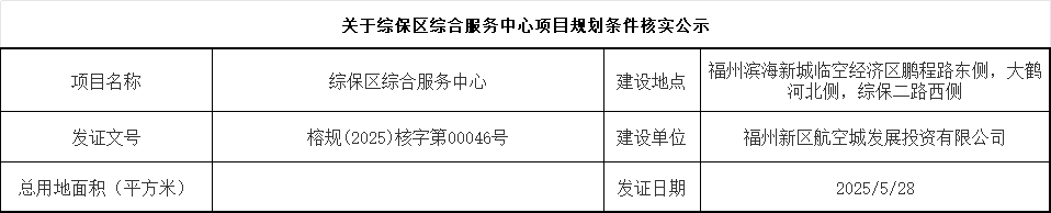 综保区综合服务中心项目规划条件核实公示