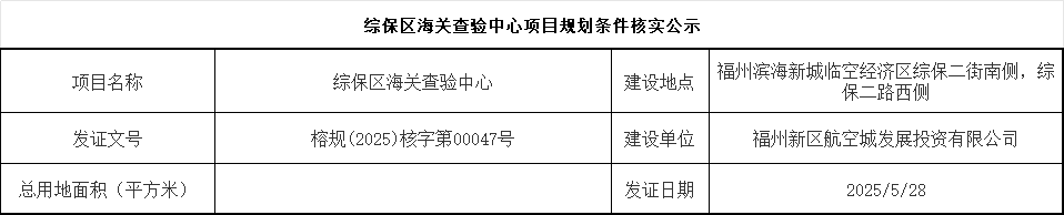 综保区海关查验中心项目规划条件核实公示