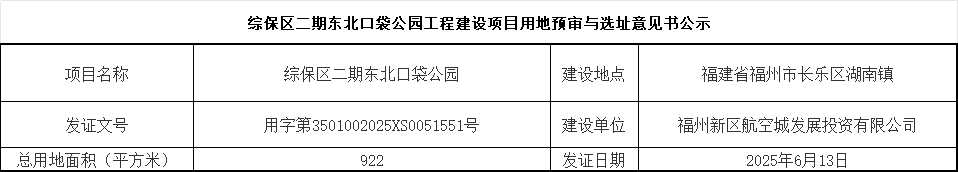 综保区二期东北口袋公园工程建设项目用地预审与选址意见书公示