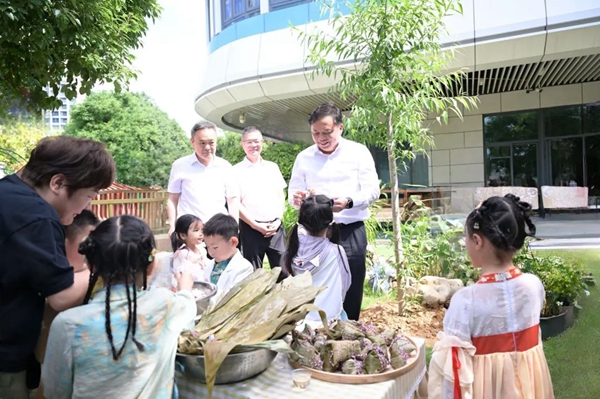 在长乐师范学校附属小学,张帆一行实地察看校史馆、思政教育基地,详细了解学校建设发展、日常教学、师资力量、德育工作开展等情况,观看孩子们精彩的节目表演,与孩子们亲切交流并送上节日祝福。在滨海新城实验幼儿园,张帆一行来到孩子们中间,俯下身子与他们热情互动,一起完成编织五彩绳、包粽子、制作香囊等趣味手工活动。