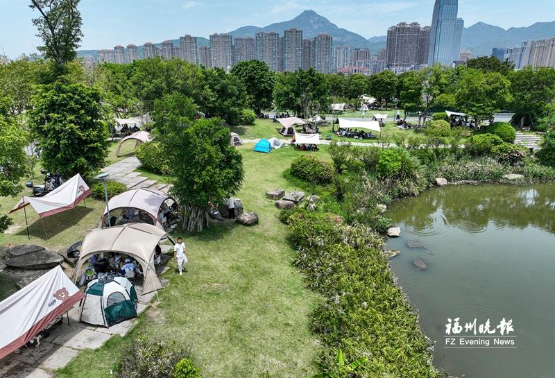 市民在三江口生态公园露营。