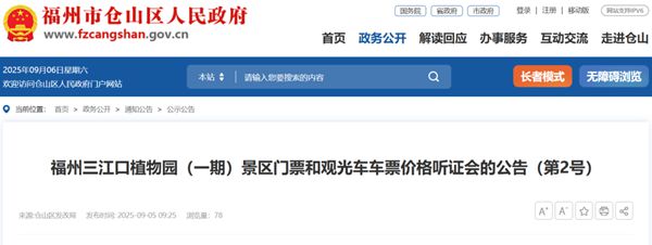 近日,福州市仓山区发展和改革局发布福州三江口植物园(一期)景区门票和观光车车票价格听证会的公告(第2号)。
