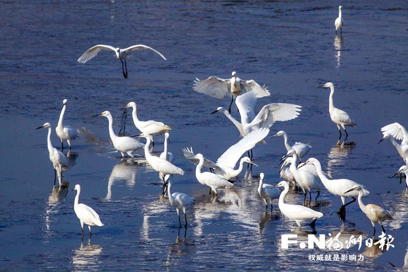 秋日的闽江河口湿地,渚清沙白、群鸟翔集。作为东亚—澳大利西亚候鸟迁飞区的重要驿站,这里是迁徙水鸟重要驿站地、越冬地和燕鸥类重要繁殖区,常年分布和越冬水鸟超过5万只,包括中华凤头燕鸥、勺嘴鹬、黑脸琵鹭等众多珍稀濒危物种。假期趁着天气晴好,不妨来此,期待一场与飞鸟的浪漫相遇。
