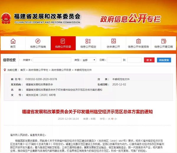 根据国家发改委、民航局复函要求,福建省发改委近日印发实施《福州临空经济示范区总体方案》。提出构建“一核四区”格局,重点推进四大建设任务。