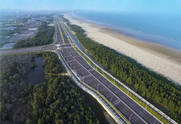 “一带”即东侧沿海以城市带状景观绿地公园模式,建设超300米宽的沿海防护森林景观带;
