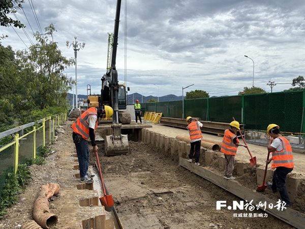 工人在开展沟槽回填作业。(福州滨海水务供图)